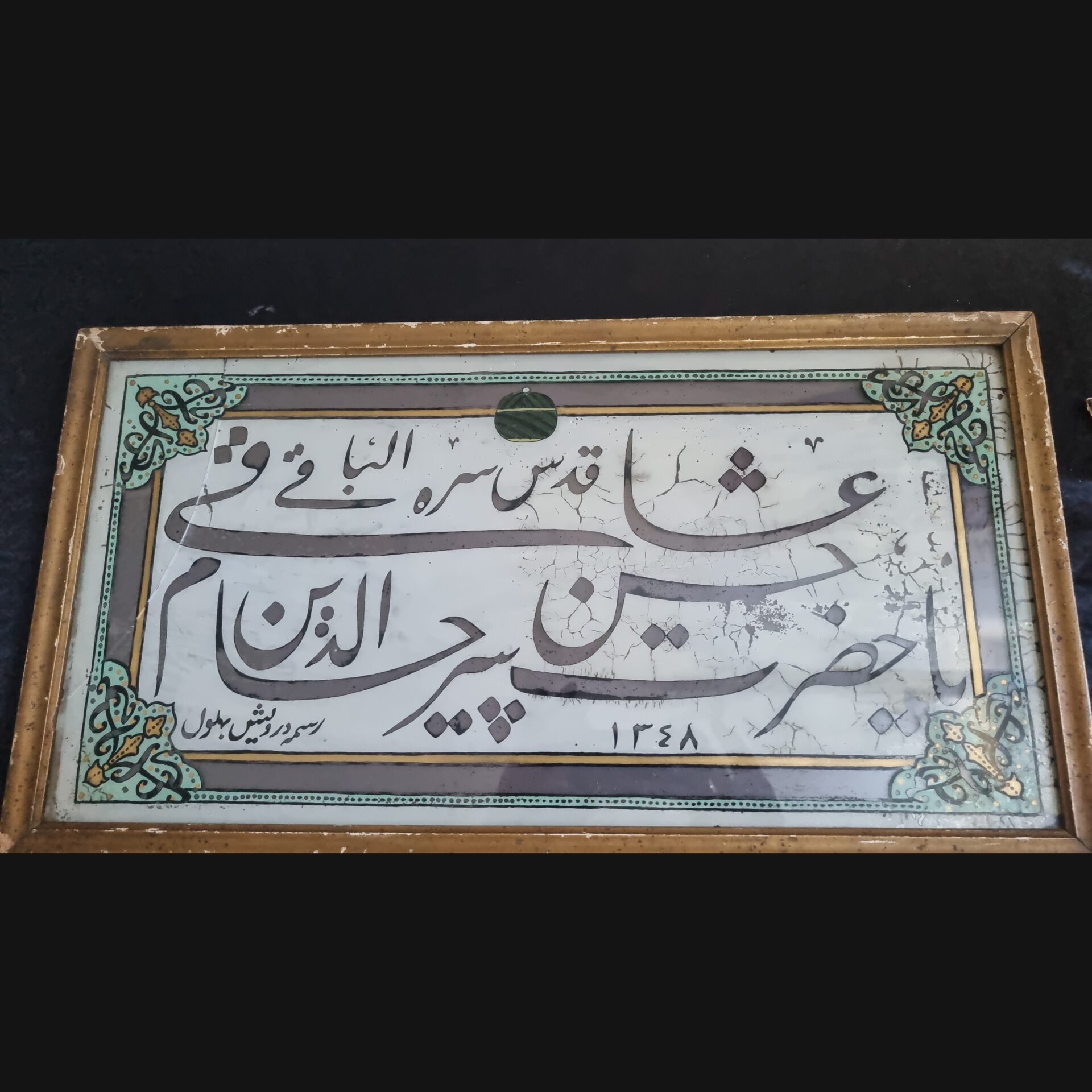 An original reverse glass painting/Tekkia calligraphy (Turkish: Cam Alti)